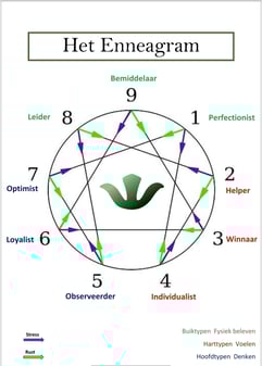 Handelen vanuit je hoofd, je hart, je buik. Ergens zit jouw kern die bepalend is voor je eerste reactie, je automatische response. Je persoonlijkheid bekent kleur wanneer je met behulp van het Enneagram op zoek gaat naar datgene wat jou echt motiveert. Het enneagram kent negen basistypen die elk weer hun specifieke verbindingen met de ander typen hebben. Geen hokjesgeest dus, maar een manier om je te verdiepen in jouw basisemotie en motivatie. Het geeft grip: je leert bewuster handelen en dus bewuster verbinding maken. Zelfsturend zijn, dat is het streven vanuit deze aanpak.